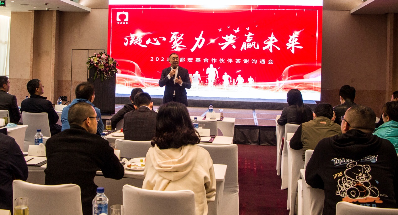 2021年3月25日,成都宏基合作伙伴答謝溝通會在凱賓斯基酒店舉行。公司董事長兼總裁吳逸云先生攜高管團隊、物資、生產(chǎn)系統(tǒng)同事出席,近七十位供應、服務合作伙伴應邀赴會。