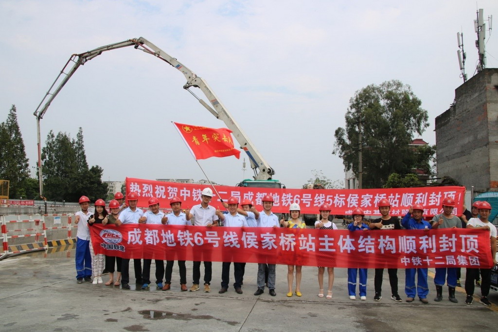 中鐵十二局“成都地鐵6號線5標(biāo)合同段”侯家橋車站提前封頂