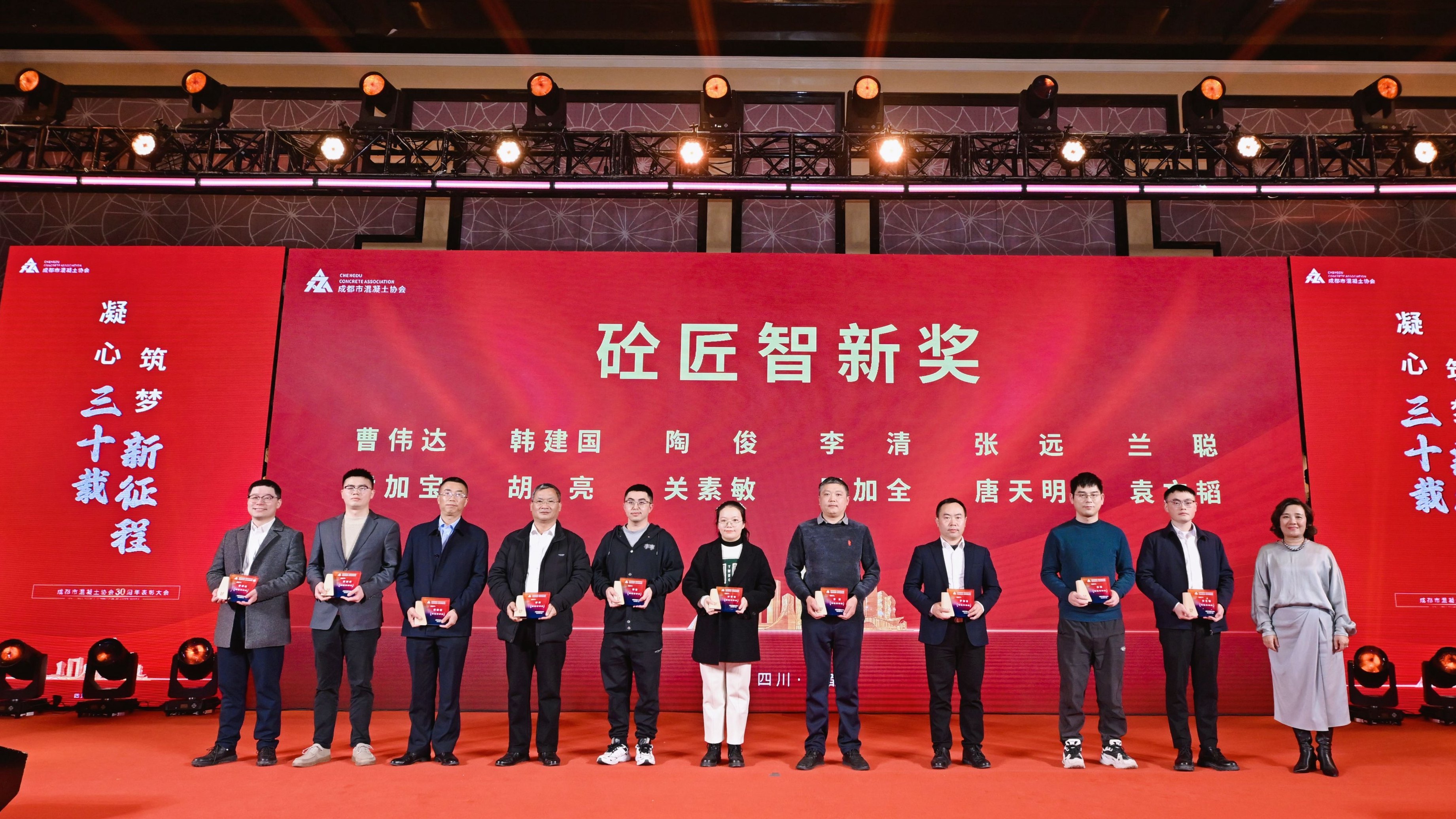 在成都宏基,始終有這樣一批人,在技術(shù)攻堅(jiān)中淬煉匠心,在材料研發(fā)里書寫突破,用顯著成就為行業(yè)發(fā)展注入新動(dòng)能。公司曹偉達(dá)、胡亮、韓建國(guó)、黃加寶4位同仁榮獲“砼匠智新獎(jiǎng)”殊榮。