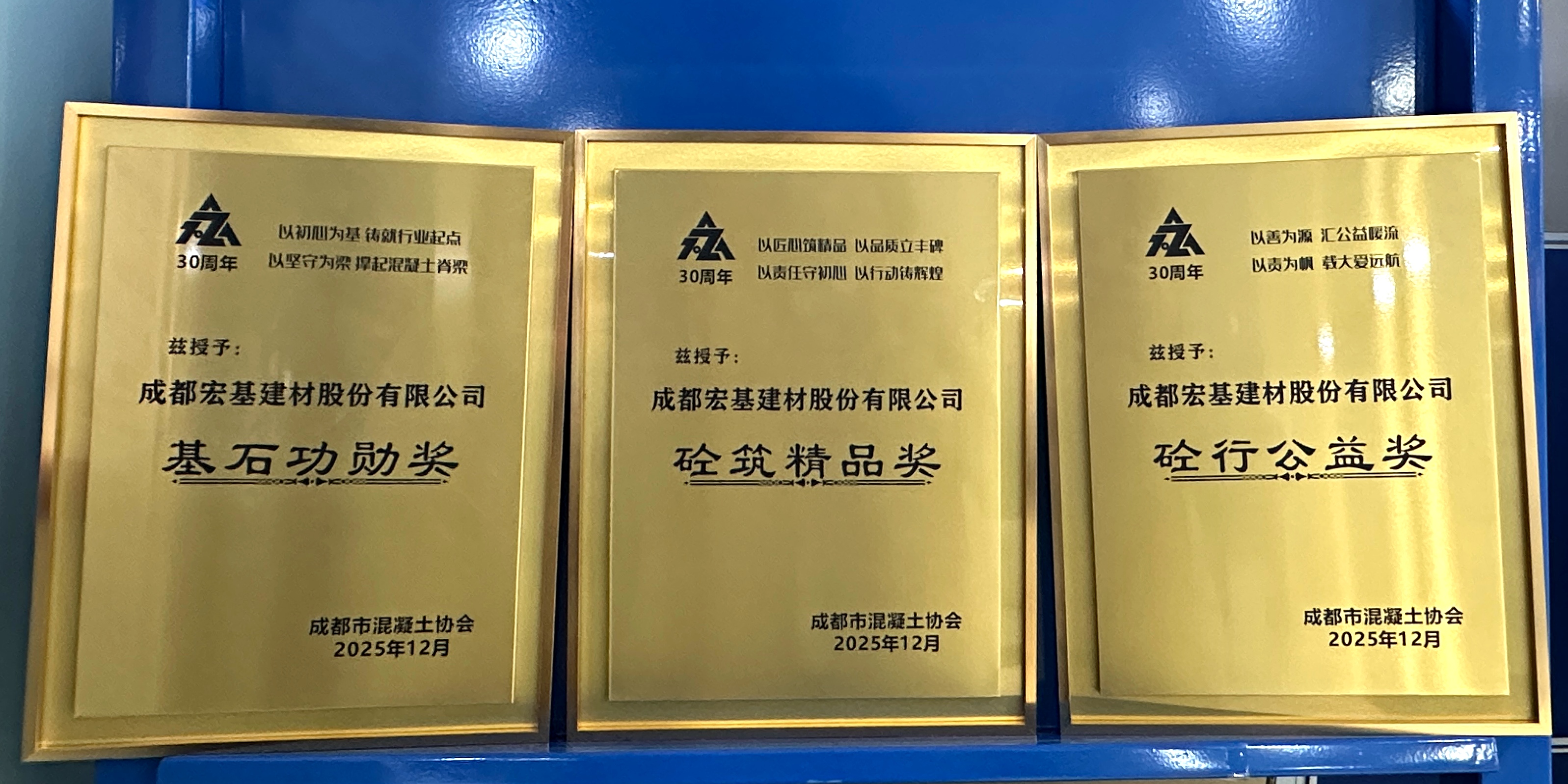 從1997年成都宏基榮獲市混凝土協(xié)會(huì)頒發(fā)的“先進(jìn)企業(yè)”稱號(hào)至2025年公司再獲“基石功勛獎(jiǎng)”。這一獎(jiǎng)項(xiàng),不僅銘刻著公司作為城市建設(shè)者的品質(zhì)初心與奮斗起點(diǎn),也見(jiàn)證著從早期工廠到智能制造的跨越發(fā)展。