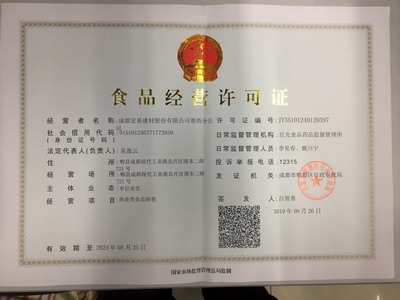2019年8月26日,蓉西分公司員工食堂經(jīng)郫都區(qū)食藥監(jiān)局檢查驗收合格,并取得郫都區(qū)行政審批局頒發(fā)《食品經(jīng)營許可證》。