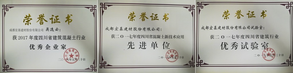 四川建筑業(yè)協(xié)會混凝土分會并于629日在成都西蜀人家會議室召開了2018年四川建筑混凝土工作年會。會議主要分為以下三方面內(nèi)容:總結(jié)了四川省建筑業(yè)協(xié)會混凝土分會2017年工作完成情況并對2018年計劃工作進行了布置、表彰行業(yè)先進、企業(yè)經(jīng)驗交流。在此次表彰過程中,公司榮獲“2017年度四川省建筑混凝土行業(yè)優(yōu)秀企業(yè)“2017年度四川省混凝土新技術(shù)應(yīng)用先進單位、“2017年度四川省建筑行業(yè)優(yōu)秀試驗室榮譽稱號,公司董事長兼總裁吳逸云被授予“2017年度四川省建筑混凝土行業(yè)優(yōu)秀企業(yè)家榮譽稱號。