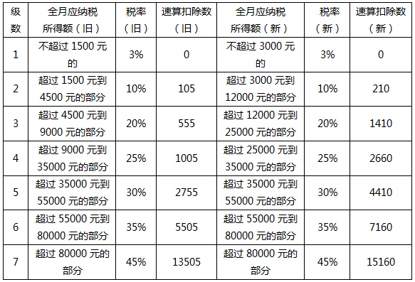 1、工資、薪金所得的新舊個(gè)稅稅率對(duì)比表