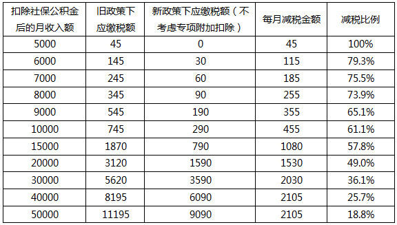 根據(jù)測(cè)算,不同收入人群的減稅情況如下表所示:(單位:元)