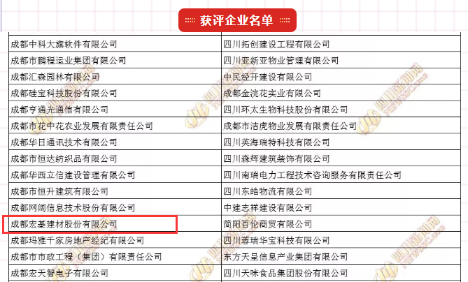 經(jīng)過(guò)報(bào)名、初評(píng)、網(wǎng)絡(luò)投票、專家評(píng)審等環(huán)節(jié),在法律顧問(wèn)和公證人員的監(jiān)督下,由17部門及社會(huì)專家組組成的22名專家評(píng)審團(tuán)最終評(píng)選出了1100家“四川省誠(chéng)信民營(yíng)企業(yè)”并公示,成都宏基成功入榜!