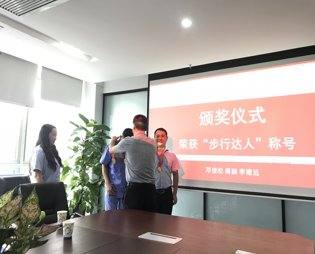 基金會于65日世界環(huán)境日之際舉行“步行一公里 環(huán)保又健體”主題活動,目的在于鼓勵員工綠色低碳出行,提高環(huán)保意識;同時強健員工體魄?;顒又校瑔T工們積極參與,堅持每日步行打卡,通過15天的比拼,豐德辦公區(qū)鄧俊松、傅穎及天府新區(qū)分公司李建遠(yuǎn)勇奪公司“步行達(dá)人”稱號;同時獲得各辦公區(qū)“步行達(dá)人”稱號的是豐德辦公區(qū)鄧玉金,蓉西分公司的阮恢武,天府新區(qū)分公司趙明均,蓉東分公司周維俊?;饡硎骂I(lǐng)導(dǎo)為獲得公司“步行達(dá)人”榮譽的員工頒發(fā)獎牌和紀(jì)念品,并合影留戀。