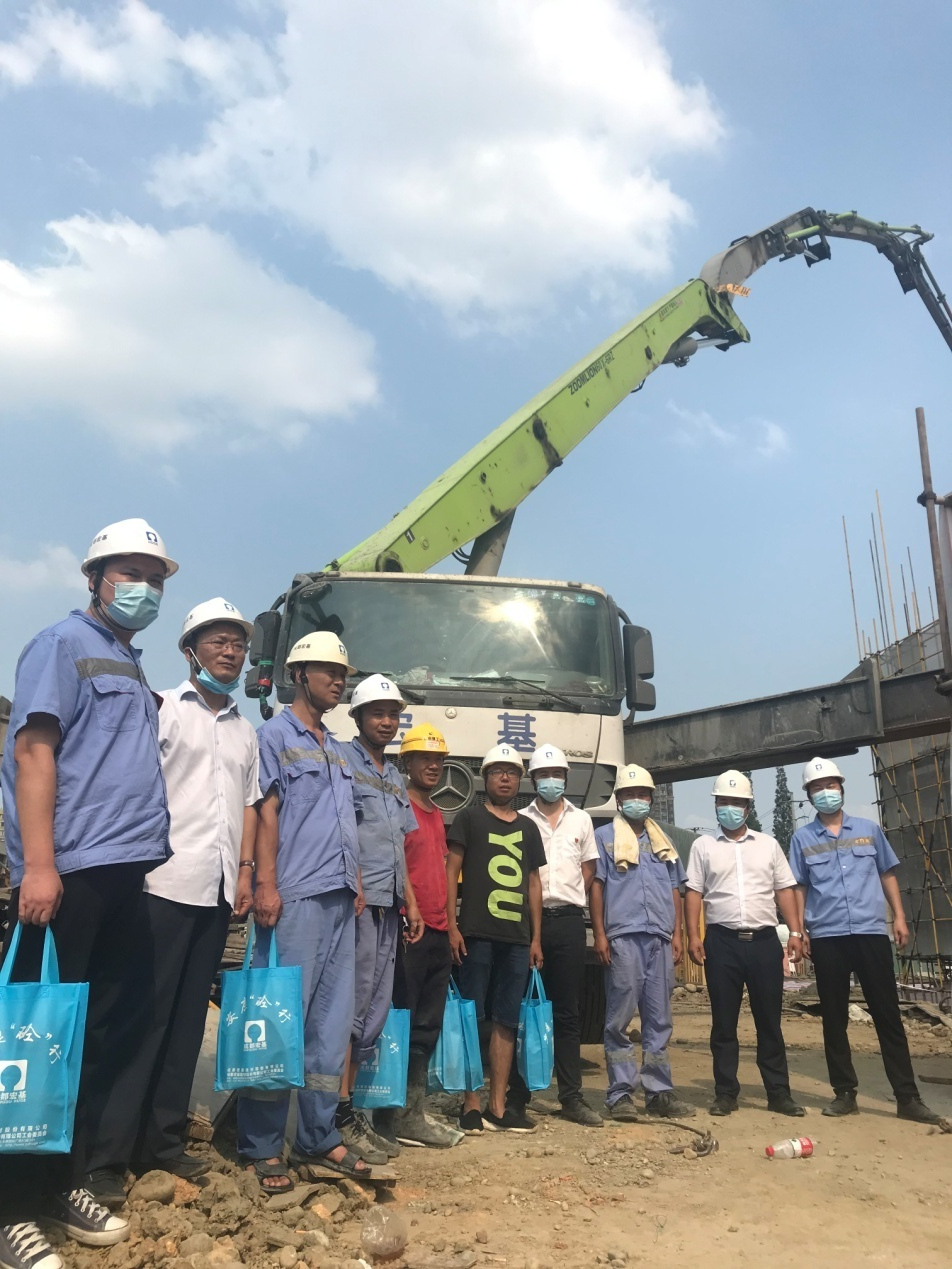七月如火,地面溫度更是高達(dá)37度以上。 29日,慰問(wèn)組成員攜慰問(wèn)禮品前往泰康、中德麓府等在建施工工地對(duì)我司員工進(jìn)行慰問(wèn)。走進(jìn)施工工地,撲面而來(lái)的熱氣令人眩暈,而此時(shí),我們的員工正在工地?fù)]汗如雨,一座座美麗的高樓拔地而起,美麗的城市少不了他們的辛勤付出。職工們收到防暑降溫禮品后紛紛表示:一定會(huì)克服酷暑高溫,堅(jiān)守崗位,盡職盡責(zé),確保安全生活和生產(chǎn)。戰(zhàn)高溫,抗酷暑,他們,正是最可愛(ài)的人。