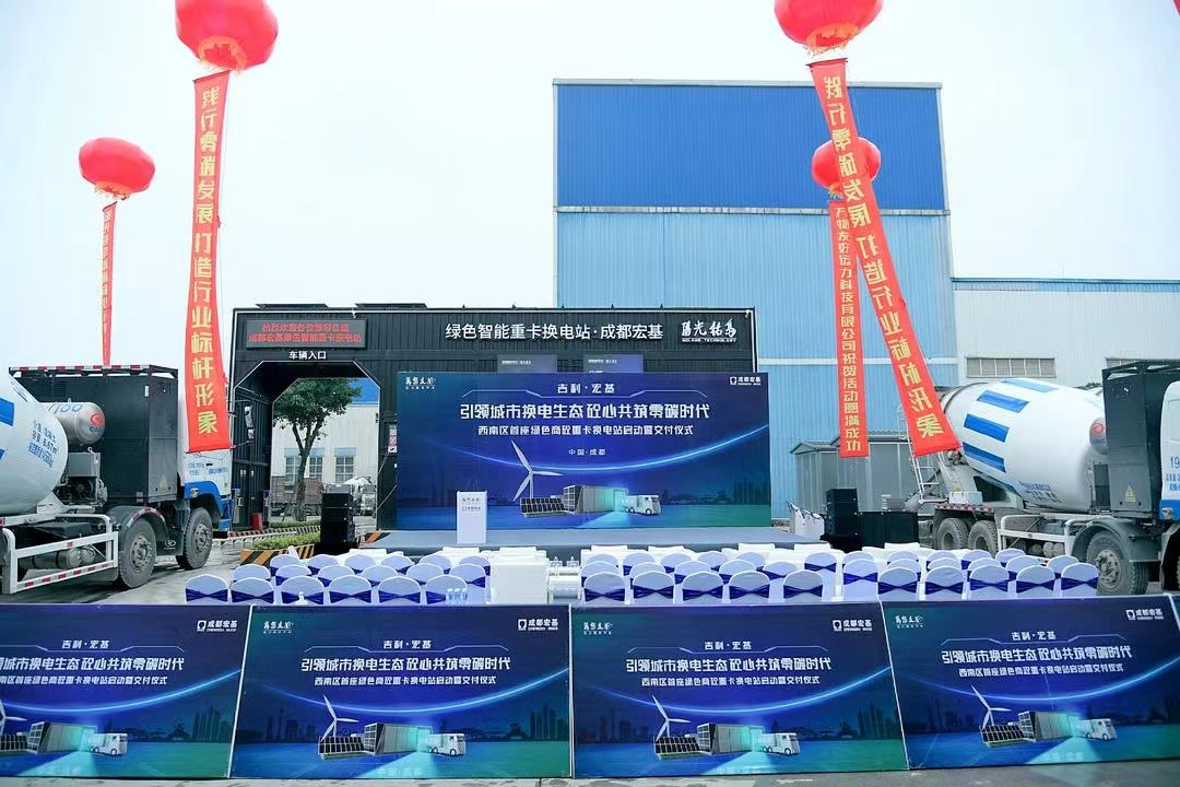 2022年5月16日,西南地區(qū)首座綠色商砼重卡換電站啟動(dòng)暨交付儀式在成都宏基建材股份有限公司(以下簡(jiǎn)稱成都宏基)順利舉辦。