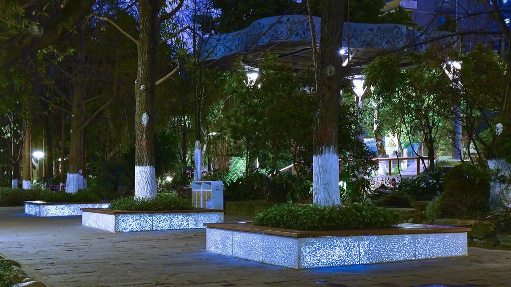 宏基產(chǎn)品應(yīng)用:心形更新樹(shù)池坐凳、透光混凝土座椅等