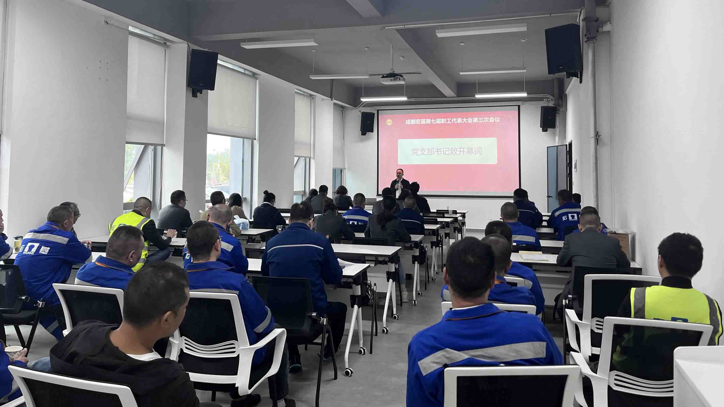 2024年10月10日,成都宏基建材股份有限公司第七屆三次職工代表大會在公司綠色建材智造中心會議室順利召開。公司黨支部書記、常務(wù)副總裁周世洪,副總裁吳雨等領(lǐng)導(dǎo)出席會議并發(fā)重要講話。共有47名來自各部門的職工代表參與了此次會議。