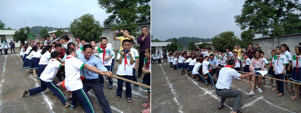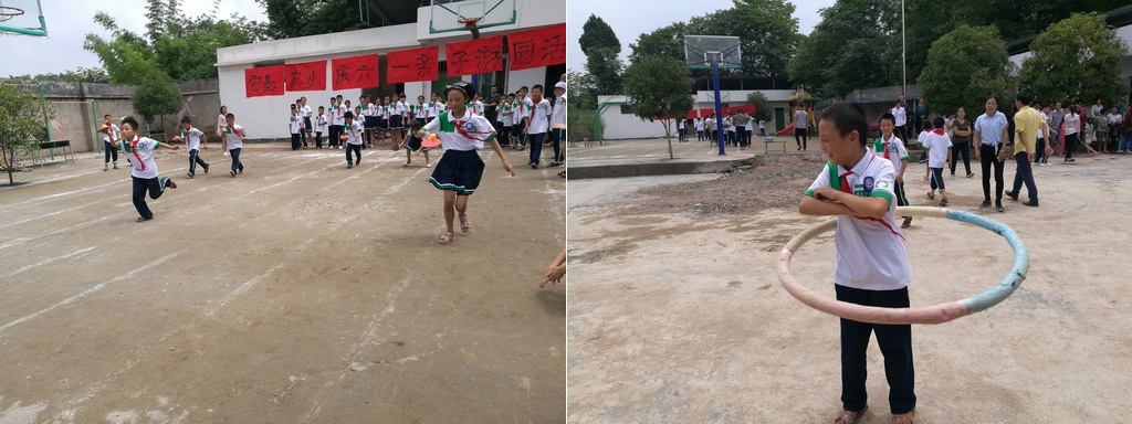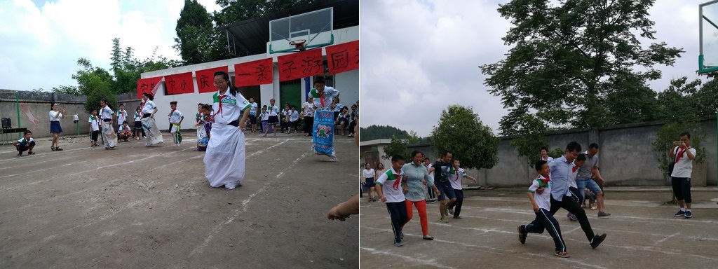 隨著周校長宣布活動開始,精彩紛呈的親子游園依次展開。本次活動名為親子游園,目的是讓更多的學(xué)生家長參與到游戲當(dāng)中,讓這鄉(xiāng)村小學(xué)的許多留守兒童們在成長過程中也能有父母更多的陪伴。拔河、你比我猜、袋鼠跳、兩人三足、端乒乓等集體賽最是精彩,需要家長全身心與孩子一起努力才能獲得勝利。由于部分學(xué)生家長確實因為路程太遠(yuǎn)而不能到場,我們的三位志愿者便當(dāng)起了臨時爸爸,他們與同學(xué)們一起飛揚在賽場,讓孩子們避免了不能參賽的遺憾,也讓自己收獲了快樂。競技總會有輸贏,優(yōu)勝的同學(xué)充滿喜悅,失敗的同學(xué)滿是后悔,這是孩子最真實的情感表達(dá),但也能激勵他們后來更加奮發(fā)圖強。
