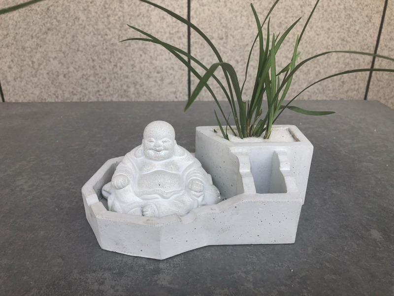好消息!好消息!好消息!重要的事情說三遍!一批水磨石外墻裝飾板制作完工后,當(dāng)我們看到制作材料尚有剩余,棄之可惜,是否可以充分利用起來制作我們的生活用品,以便及時(shí)解決我們的生活所需?蓉西分公司一樓的角落正好缺少一套休息所需的桌凳,對(duì),說干就干,經(jīng)過定模-澆筑-脫模養(yǎng)護(hù)-綜合處理,一套清水混凝土桌凳、一尊彌勒佛像水泥工藝品、一個(gè)兼具盆栽功能的藝術(shù)煙灰缸完美呈現(xiàn)在我們的面前,像是炎熱夏季的一股清涼,它給我們平淡的生活增添了別樣的風(fēng)采。今后,我們將充分利用清水混凝土粗獷而不失細(xì)膩的質(zhì)感與簡(jiǎn)潔大方的風(fēng)格,制作出更多惟妙惟肖的生活用品,讓清水混凝土真正融入我們的生活中來。