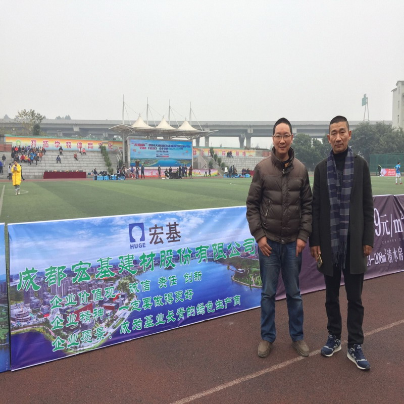 賽事當(dāng)天,我有幸到達比賽現(xiàn)場觀看本次總決賽,心情特別高興,親臨現(xiàn)場觀看一場正規(guī)的足球賽是我一直以來的心愿。來到足球賽場門口,首先引入眼簾的是成都宏基建材股份有限公司贊助商的五個廣告牌,相比其他贊助商的廣告牌數(shù)量,做為宏基人的自豪感油然而生,這充分說明公司在財力以及企業(yè)文化建設(shè)方面的重視程度。
