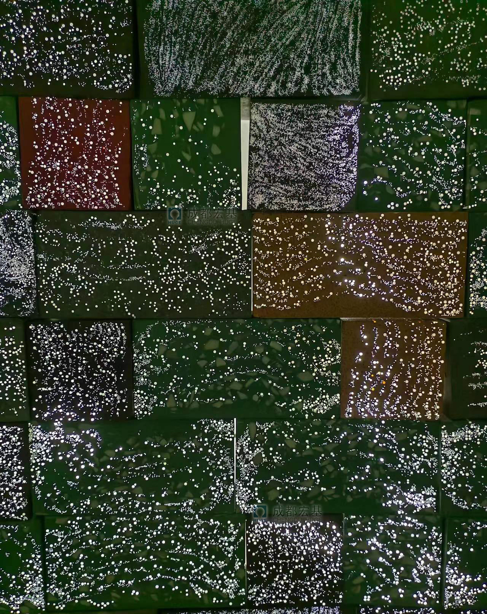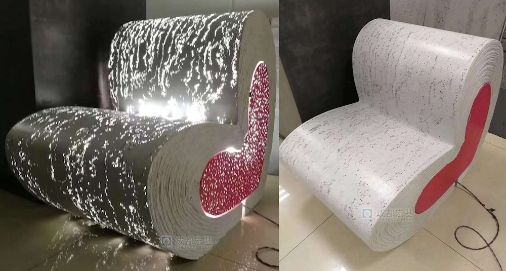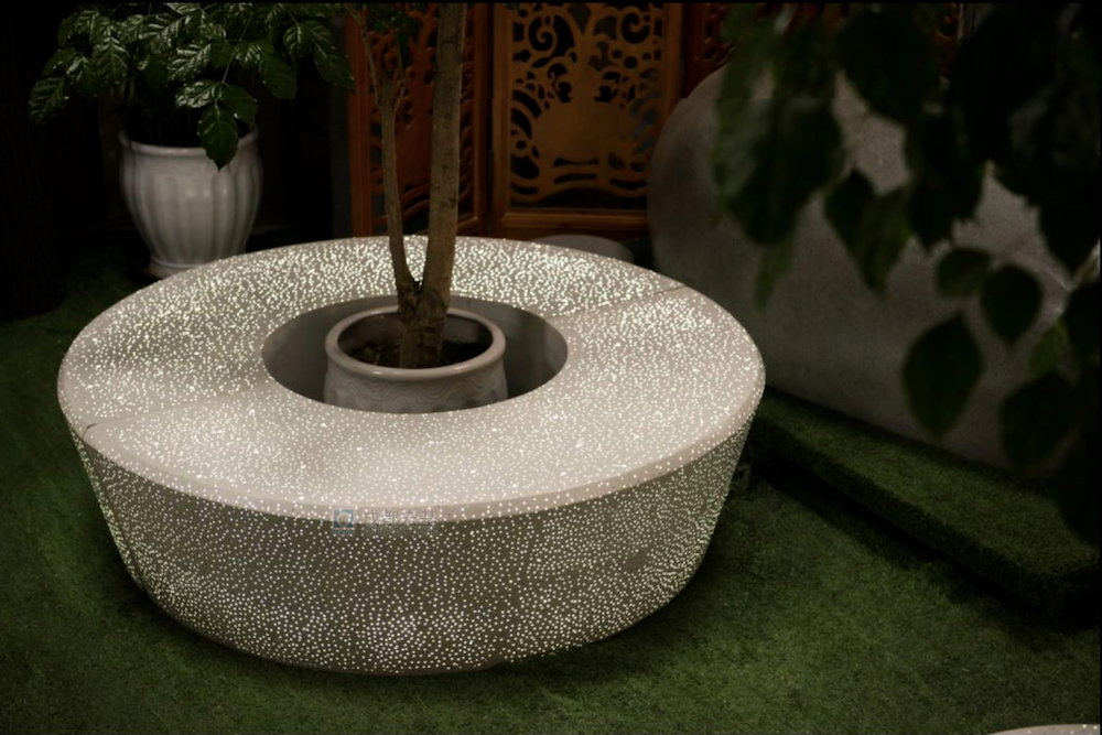 與普通透光混凝土相比,宏基透光混凝土強度高(抗壓強度≥40MPa)、優(yōu)異的抗裂性能(抗折強度≥8MP),豐富的造型(包括板、樹池、梯步和長凳等)和多樣的透光花樣(流水紋、滿天星和矩陣等),可完全滿足設計師的需要。