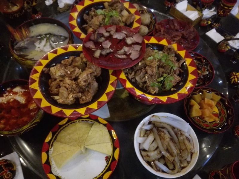 最后抵赴海漯溝的門(mén)戶-磨西古鎮(zhèn),這里有當(dāng)年紅軍長(zhǎng)征時(shí)的舊址,有法國(guó)人1923年來(lái)此建的教堂,有唐番古道遺址,還有古街上獨(dú)具特色的小酒吧,使得古鎮(zhèn)別有一番風(fēng)情和魅力。晚上我們品嘗了當(dāng)?shù)靥厣妥宕蟛停€有彝族美女婉轉(zhuǎn)美妙的歌聲一掃大家旅途的勞頓。