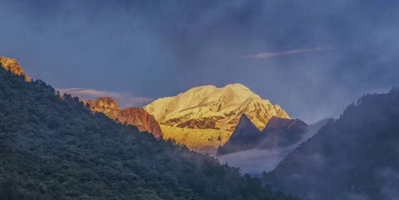 經(jīng)歷了一天大自然的洗禮,呼吸了森林中富氧的空氣,整個(gè)人從頭到腳都倍感清新。旅途的第三天,小伙伴們自發(fā)早起去觀看了“蜀山之王”貢嘎山主峰上的奇觀——日照金山,讓人不禁感嘆大自然的神奇。